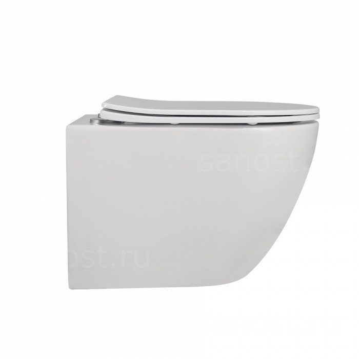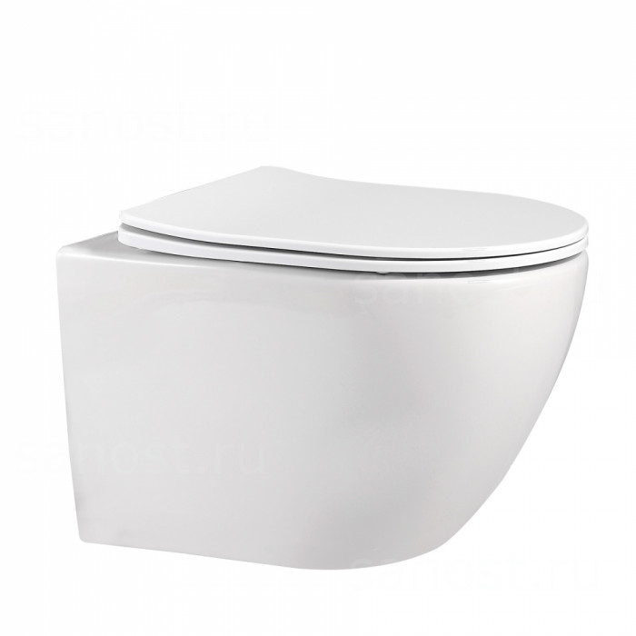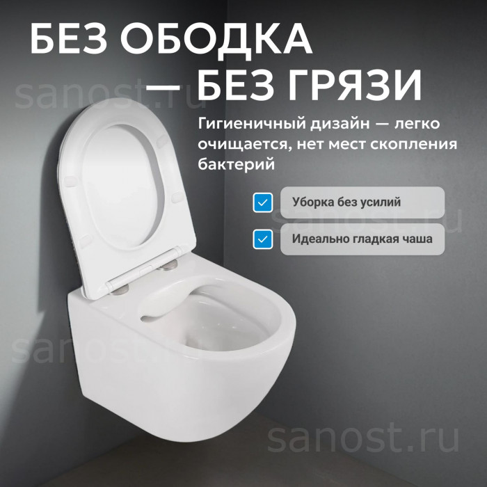 Унитаз ABBER Bequem AC1100 подвесной белый, безободковый, Безободковый, функция Антивсплеск, Антигрязевое покрытие, сиденье в комплекте, режим смыва: каскадный, высококачественная керамика устойчивая к царапинам, температура обжига более 1200°C, металлическая немецкая фурнитура