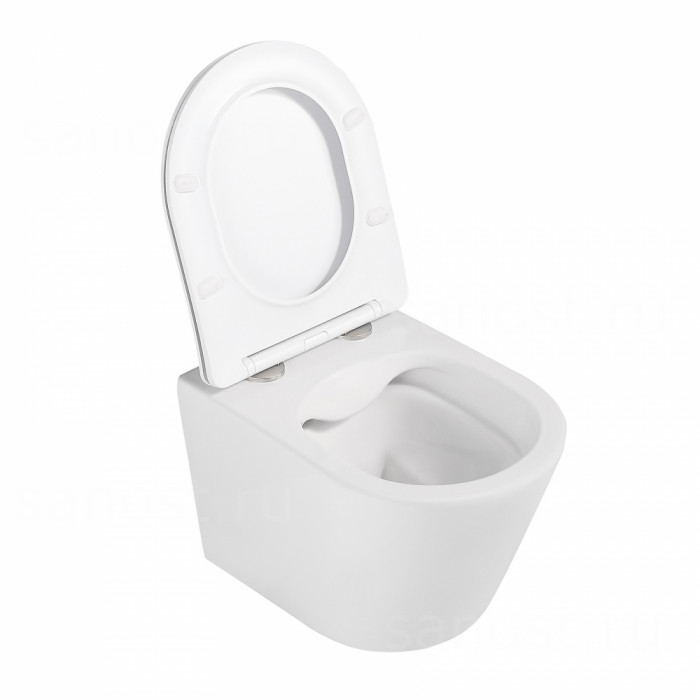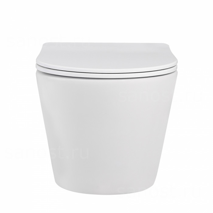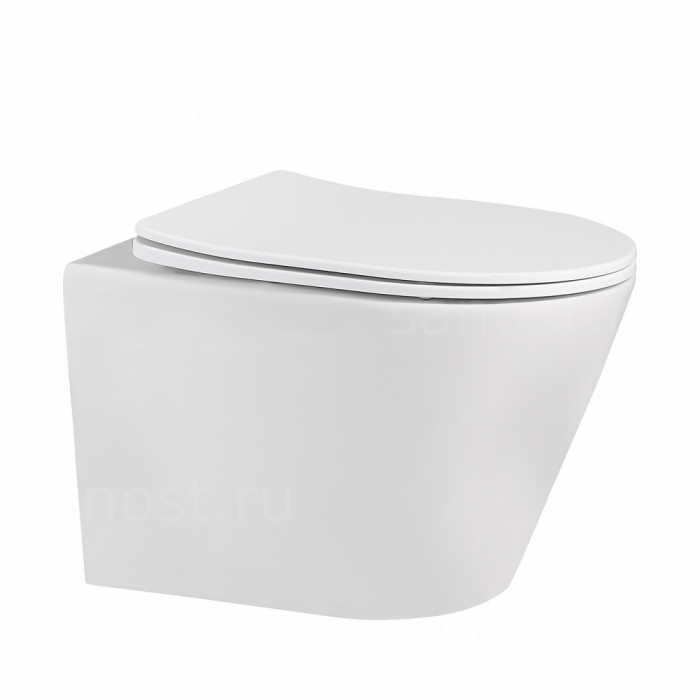 Унитаз ABBER Bequem AC1102MW подвесной белый матовый, безободковый, Безободковый, функция Антивсплеск, Антигрязевое покрытие, сиденье в комплекте, режим смыва: каскадный, высококачественная керамика устойчивая к царапинам, температура обжига более 1200°C