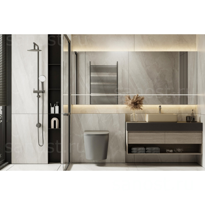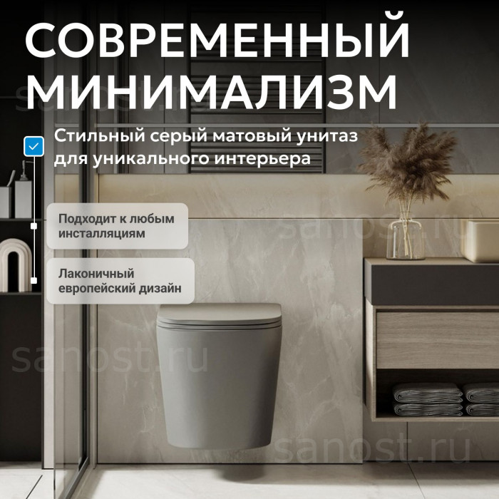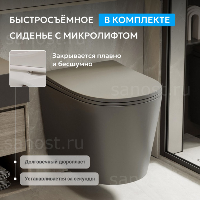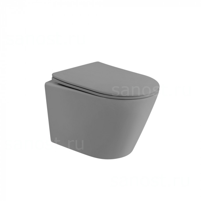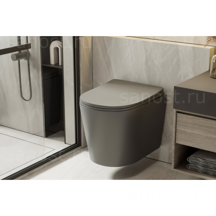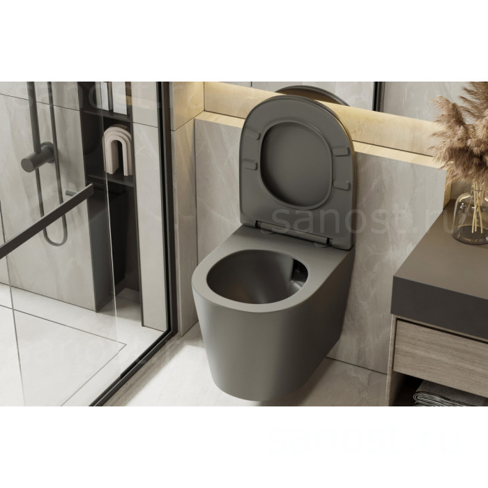 Унитаз ABBER Bequem AC1102TMG подвесной серый матовый, безободковый, смыв торнадо, Безободковый, функция Антивсплеск, Антигрязевое покрытие, сиденье в комплекте, режим смыва: торнадо,