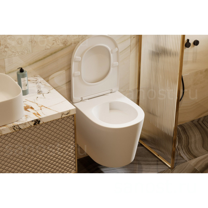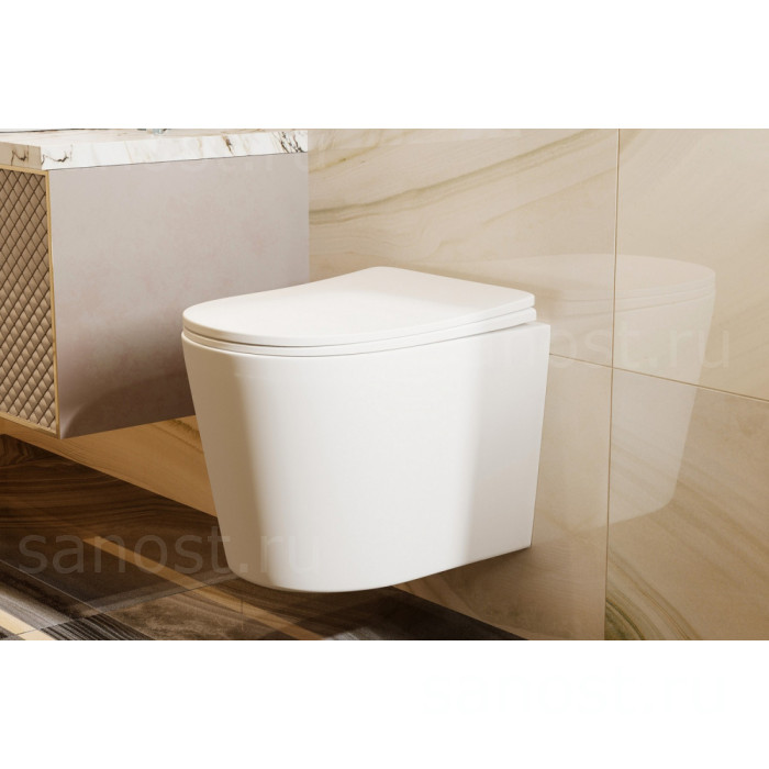 Унитаз ABBER Bequem AC1102TMW подвесной белый матовый, безободковый, смыв торнадо, Безободковый, функция Антивсплеск, Антигрязевое покрытие, сиденье в комплекте, режим смыва: торнадо,