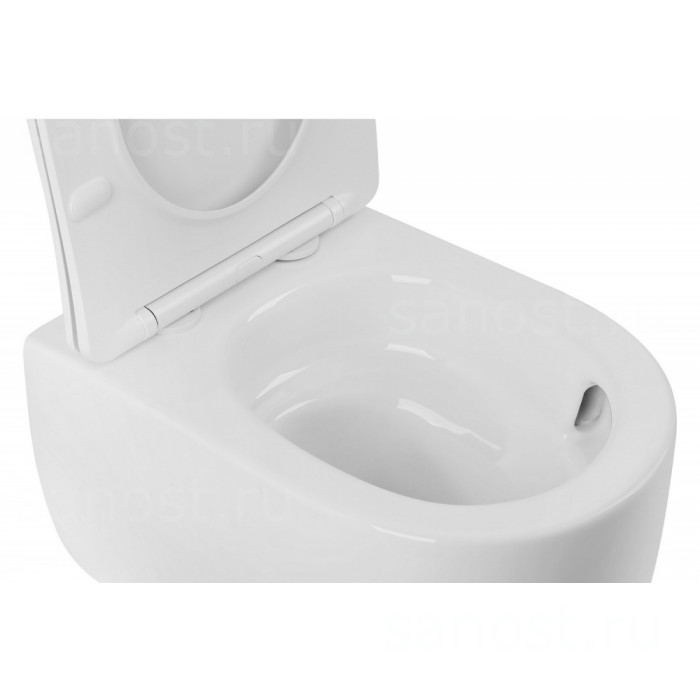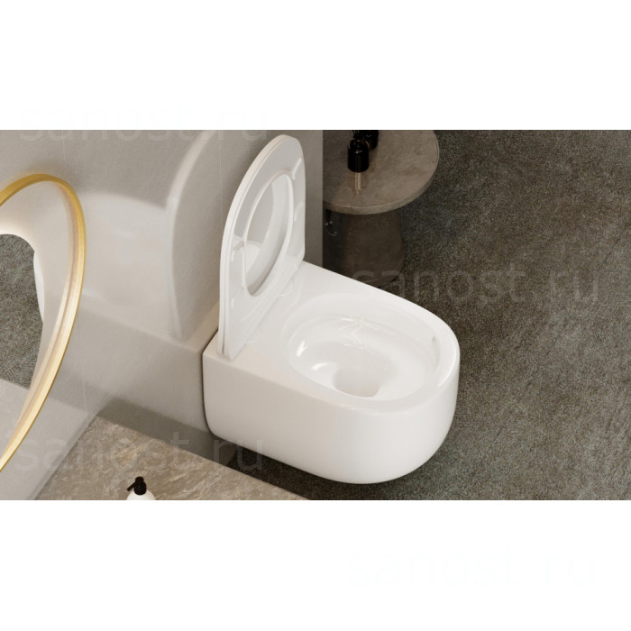 Унитаз ABBER Bequem AC1104TN подвесной белый, безободковый, смыв торнадо, Безободковый, функция Антивсплеск, Антигрязевое покрытие, сиденье в комплекте, режим смыва: двойной, высококачественная керамика устойчивая к царапинам, температура обжига более 1200°C, металлическая немецкая фурнитура