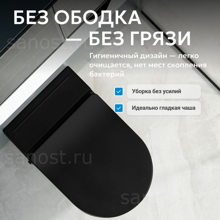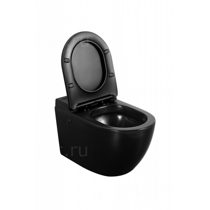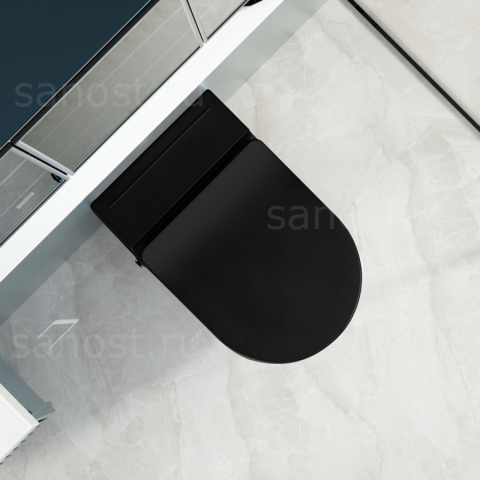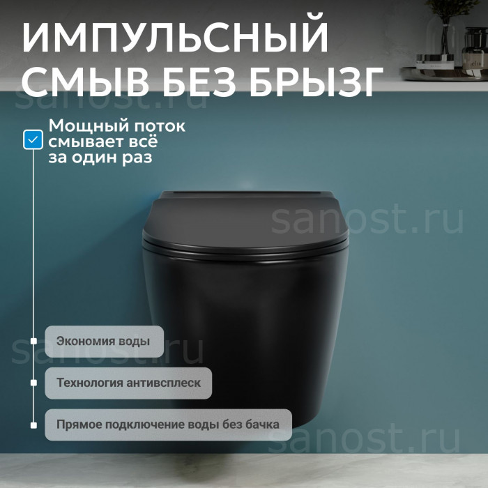 Унитаз ABBER Bequem AC1108PMB подвесной черный матовый с импульсным смывом, Безободковый, функция Антивсплеск, Антигрязевое покрытие, сиденье в комплекте, режим смыва: двойной, рабочее давление 1.5 - 5.5 бар