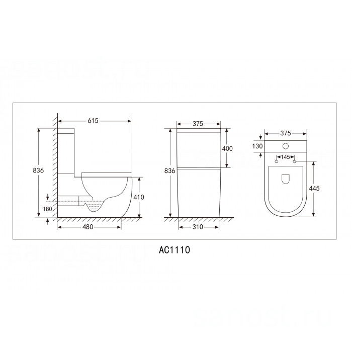 Технические характеристики Унитаз ABBER Bequem AC1110 компакт белый, безободковый