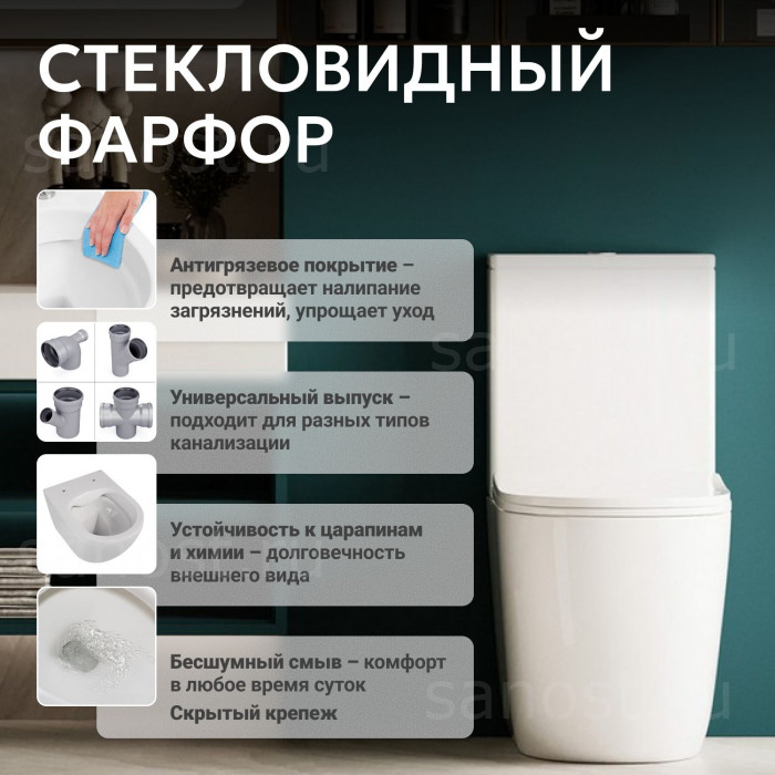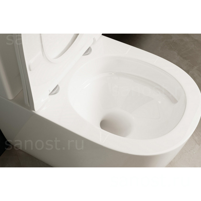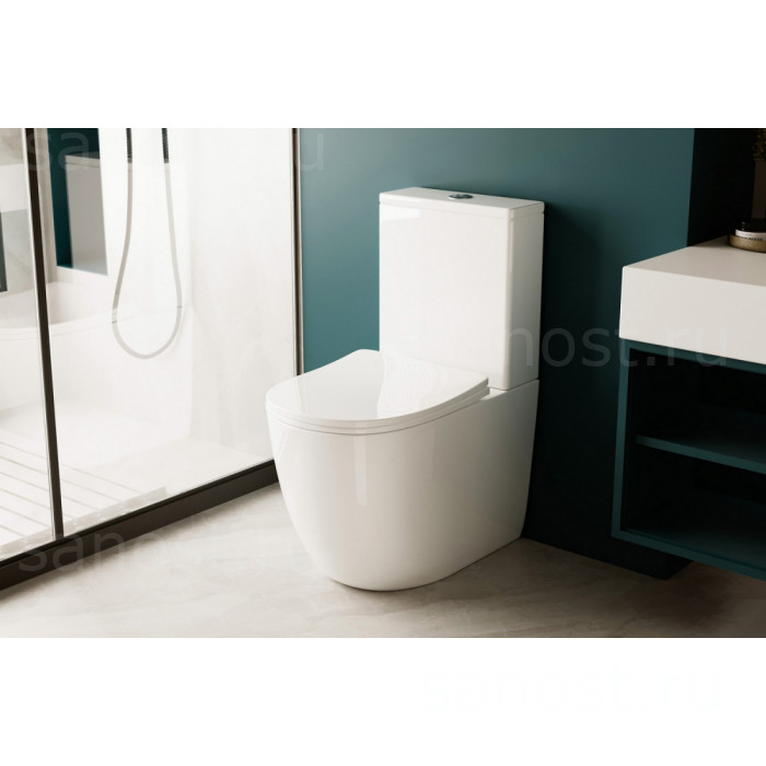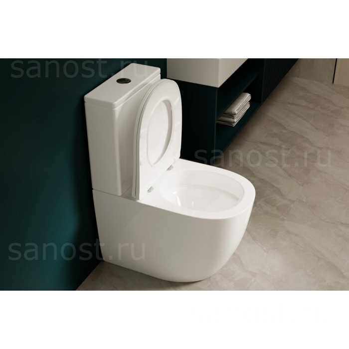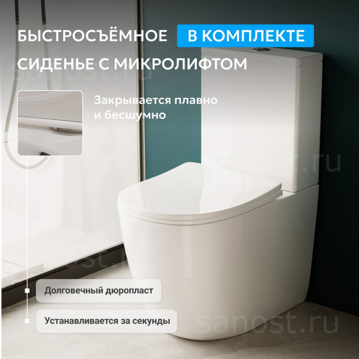 Унитаз ABBER Bequem AC1110T компакт белый, безободковый, смыв торнадо, Безободковый, функция Антивсплеск, Антигрязевое покрытие, сиденье в комплекте, бачок в комплекте, режим смыва: торнадо,