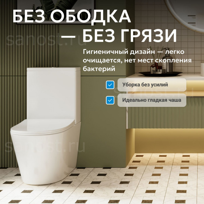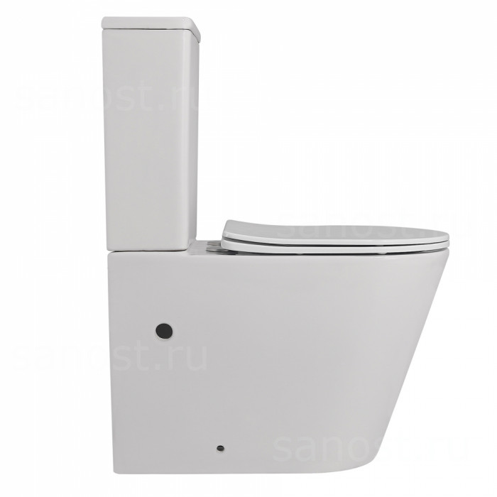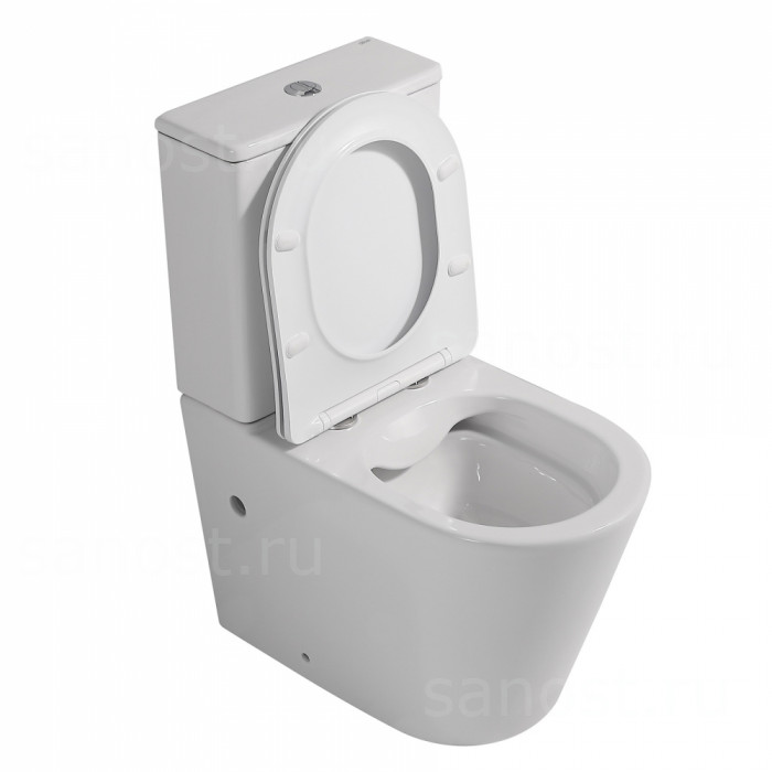 Унитаз ABBER Bequem AC1112 компакт белый, безободковый, Безободковый, функция Антивсплеск, Антигрязевое покрытие, сиденье в комплекте, бачок в комплекте, режим смыва: каскадный, высококачественная керамика устойчивая к царапинам, температура обжига более 1200°C, металлическая немецкая фурнитура