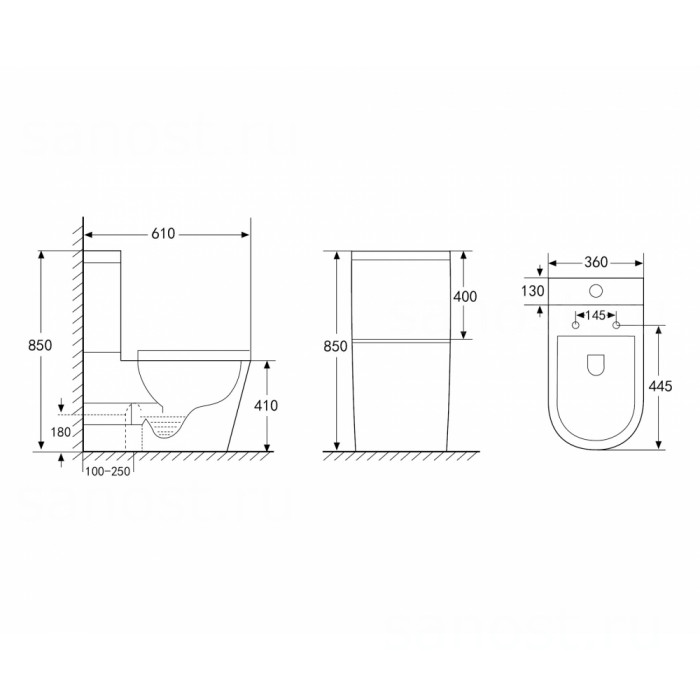Технические характеристики Унитаз ABBER Bequem AC1112 компакт белый, безободковый