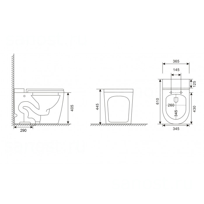 Технические характеристики Унитаз ABBER Bequem AC1114P приставной белый с импульсным смывом