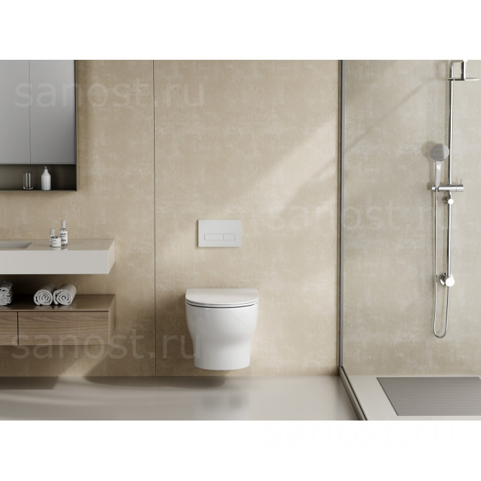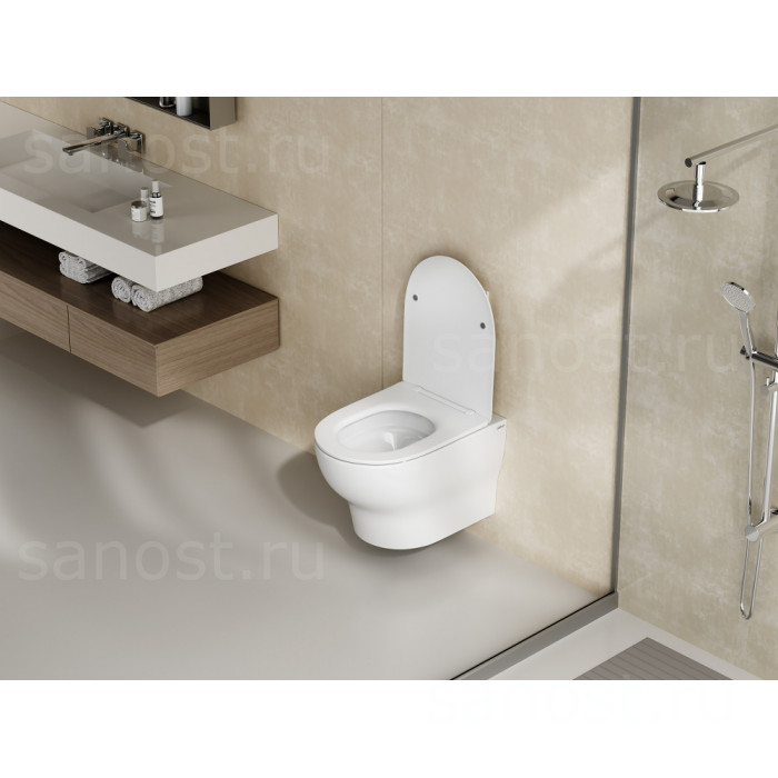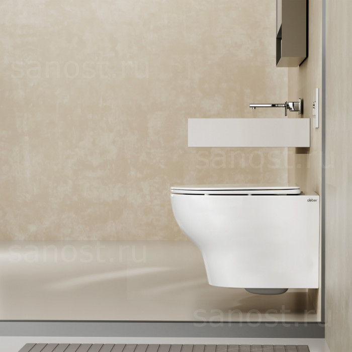 Унитаз ABBER Bequem AC1128 подвесной белый, безободковый, смыв торнадо, Безободковый, функция Антивсплеск, Антигрязевое покрытие, сиденье в комплекте, режим смыва: торнадо,