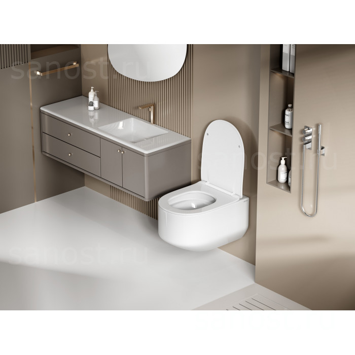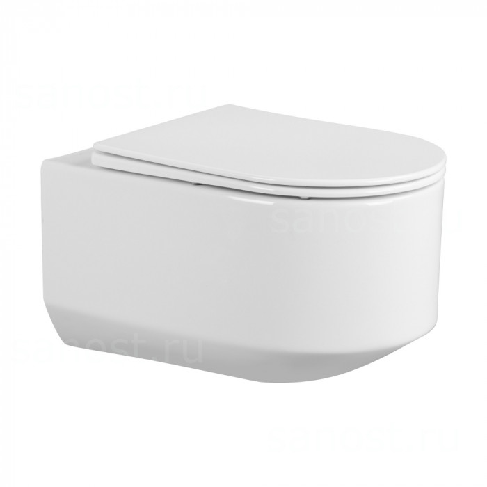 Унитаз ABBER Bequem AC1130 подвесной белый, безободковый, смыв торнадо, Безободковый, функция Антивсплеск, Антигрязевое покрытие, сиденье в комплекте, режим смыва: торнадо,