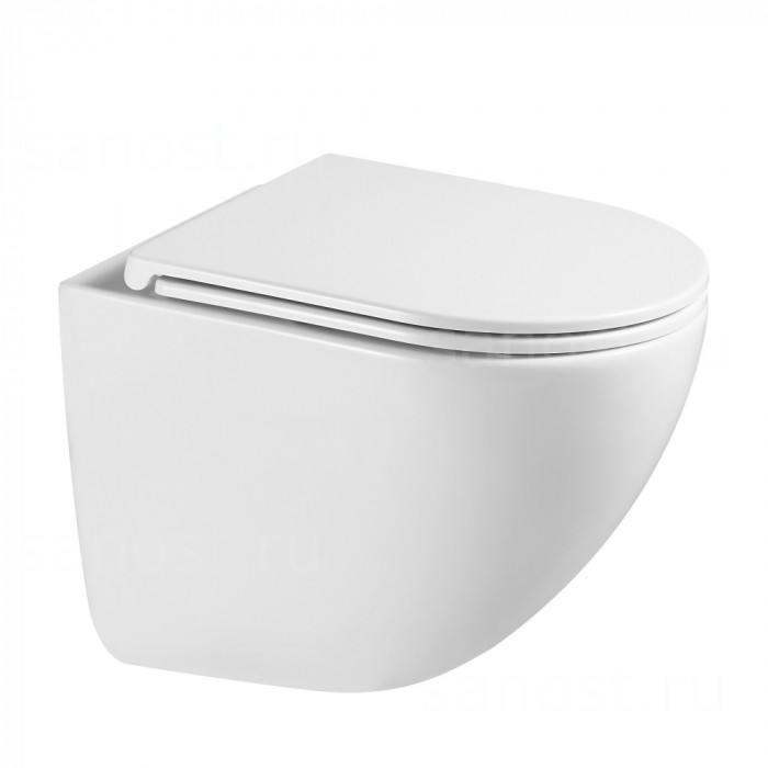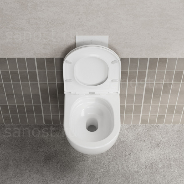 Унитаз ABBER Bequem AC1131TC подвесной белый, безободковый, смыв торнадо, с закрытым дном, Безободковый, функция Антивсплеск, Антигрязевое покрытие, сиденье в комплекте, режим смыва: торнадо,