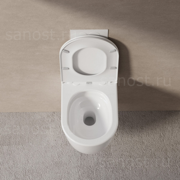 Унитаз ABBER Bequem AC1132TC подвесной белый, безободковый, смыв торнадо, с закрытым дном, Безободковый, функция Антивсплеск, Антигрязевое покрытие, сиденье в комплекте, режим смыва: торнадо,