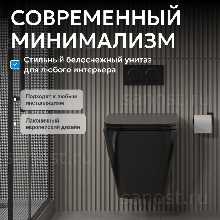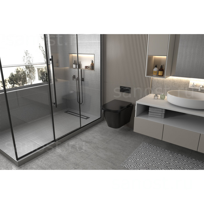 Унитаз ABBER Rechteck AC1201MB подвесной черный матовый, безободковый