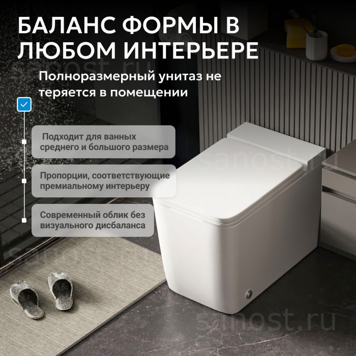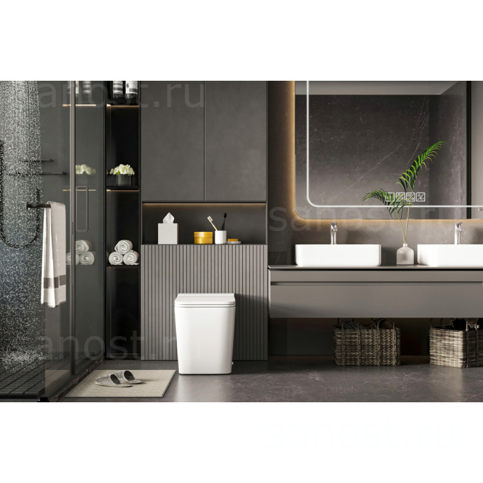 Унитаз ABBER Rechteck AC1212P приставной белый с импульсным смывом, функция Антивсплеск, Антигрязевое покрытие, сиденье в комплекте, режим смыва: импульсный, высококачественная керамика устойчивая к царапинам, температура обжига более 1200°C, металлическая немецкая фурнитура