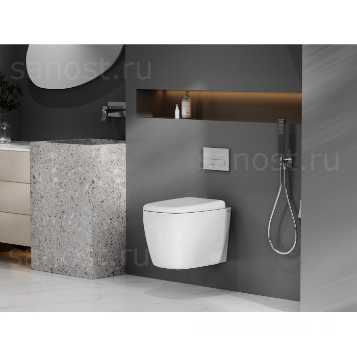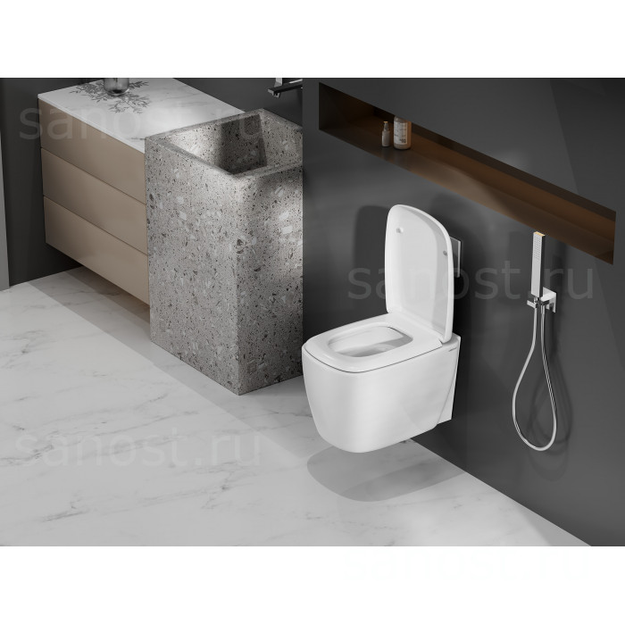 Унитаз ABBER Rechteck AC1217 подвесной белый, безободковый, смыв торнадо, Безободковый, функция Антивсплеск, Антигрязевое покрытие, сиденье в комплекте, режим смыва: торнадо,