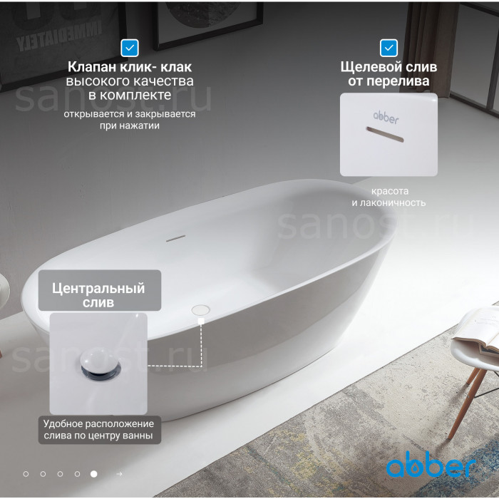 Технические характеристики Акриловая ванна ABBER AB9205 белая