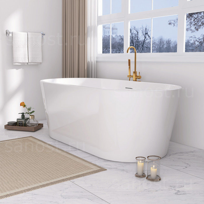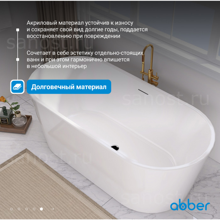 Акриловая ванна ABBER AB9209 белая универсальная отдельностоящая, материал акрил, объём 200 литров. Германия. Гарантия 10 лет.