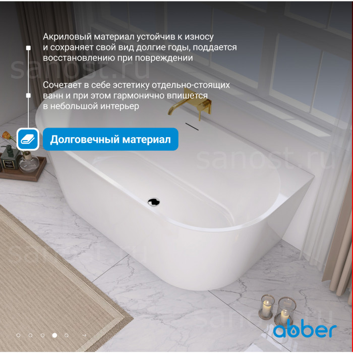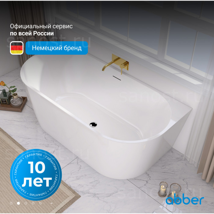 Акриловая ванна ABBER AB9216-1.3 белая универсальная пристенная, материал акрил, объём 180 литров. Германия. Гарантия 10 лет.