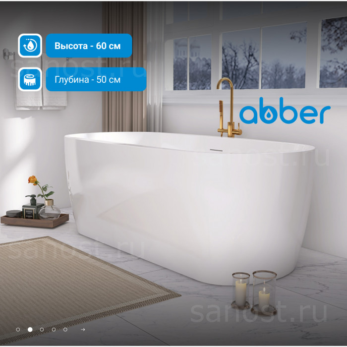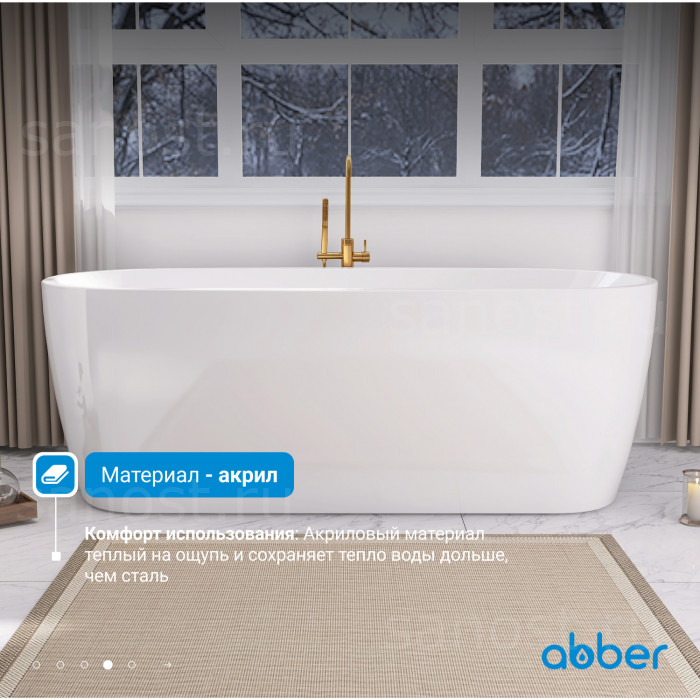 Акриловая ванна ABBER AB9219 белая универсальная отдельностоящая, материал акрил, объём 180 литров. Германия. Гарантия 10 лет.