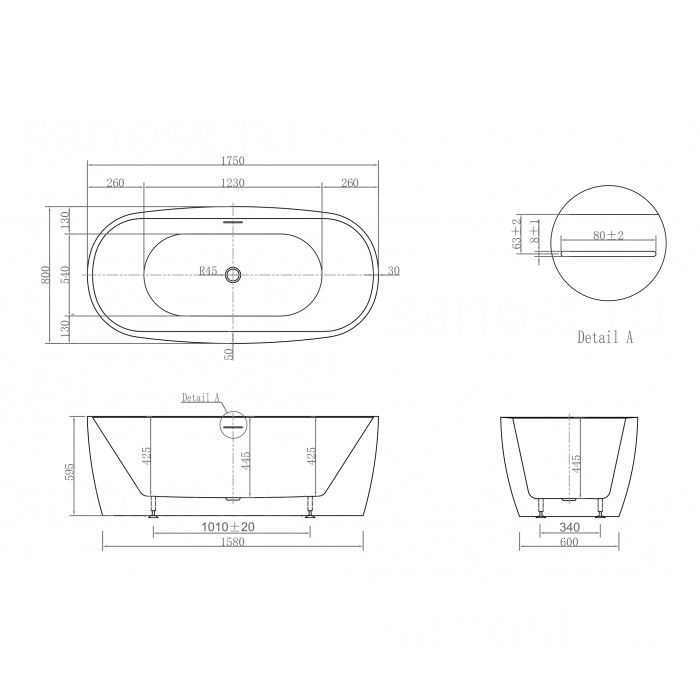 | Материалакрил | Длина, см175.5 | Ширина, см80 |
