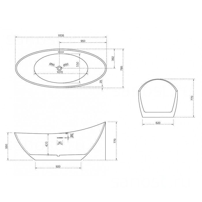 | Материалакрил | Длина, см184 | Ширина, см79 |