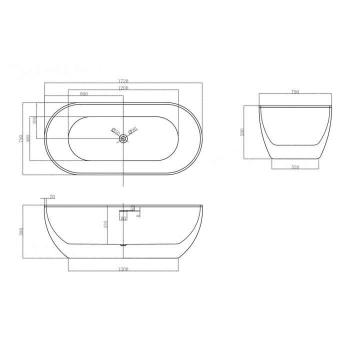| Материалакрил | Длина, см172 | Ширина, см79 |