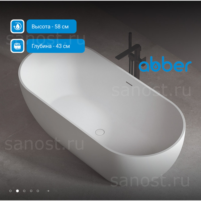 Акриловая ванна ABBER AB9241MW белая матовая универсальная отдельностоящая, материал акрил, объём 180 литров. Германия. Гарантия 10 лет.