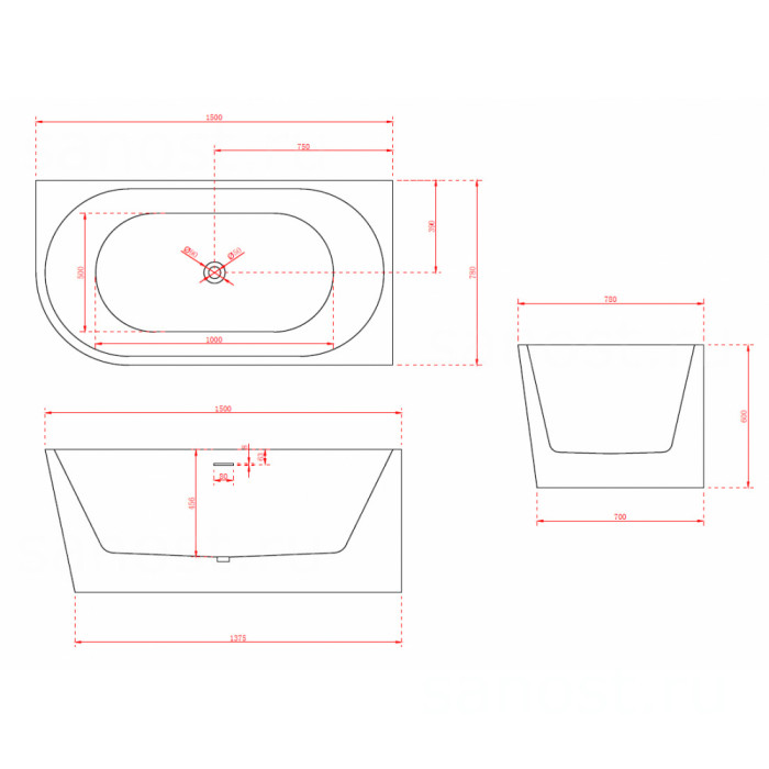 | Материалакрил | Длина, см150 | Ширина, см78 |