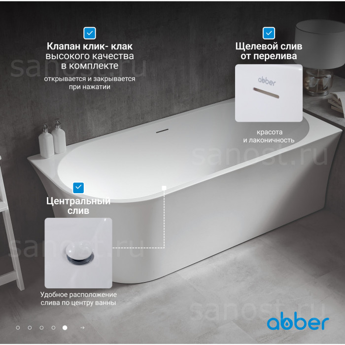 Технические характеристики Акриловая ванна ABBER AB9257-1.5 R белая