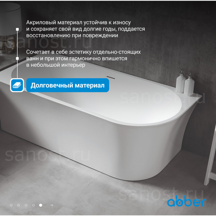 Акриловая ванна ABBER AB9257-1.5 R белая правосторонняя пристенная, материал акрил, объём 205 литров. Германия. Гарантия 10 лет.