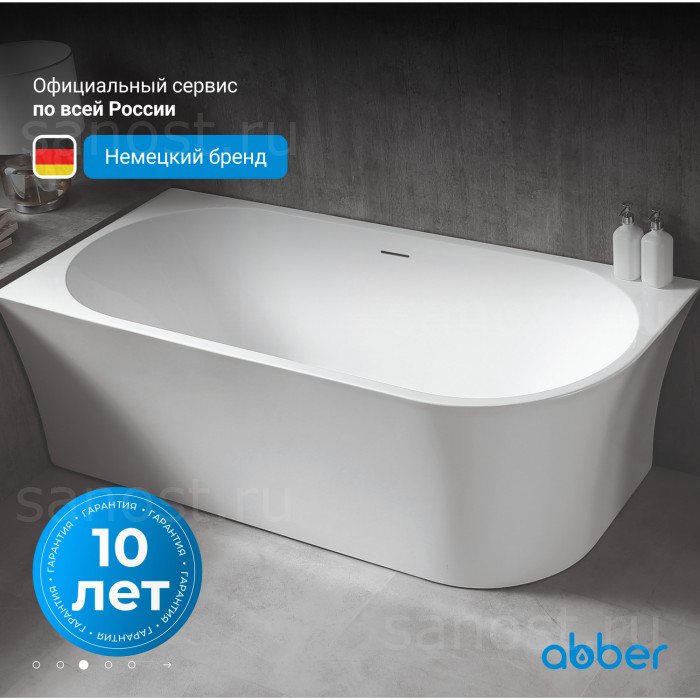 Акриловая ванна ABBER AB9257-1.7 L белая левосторонняя пристенная, материал акрил, объём 225 литров. Германия. Гарантия 10 лет.