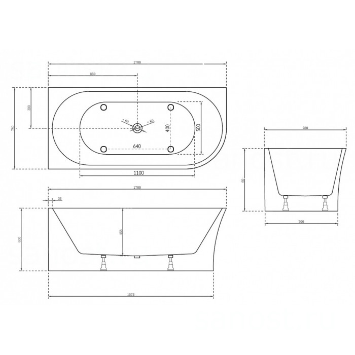 | Материалакрил | Длина, см170 | Ширина, см78 |