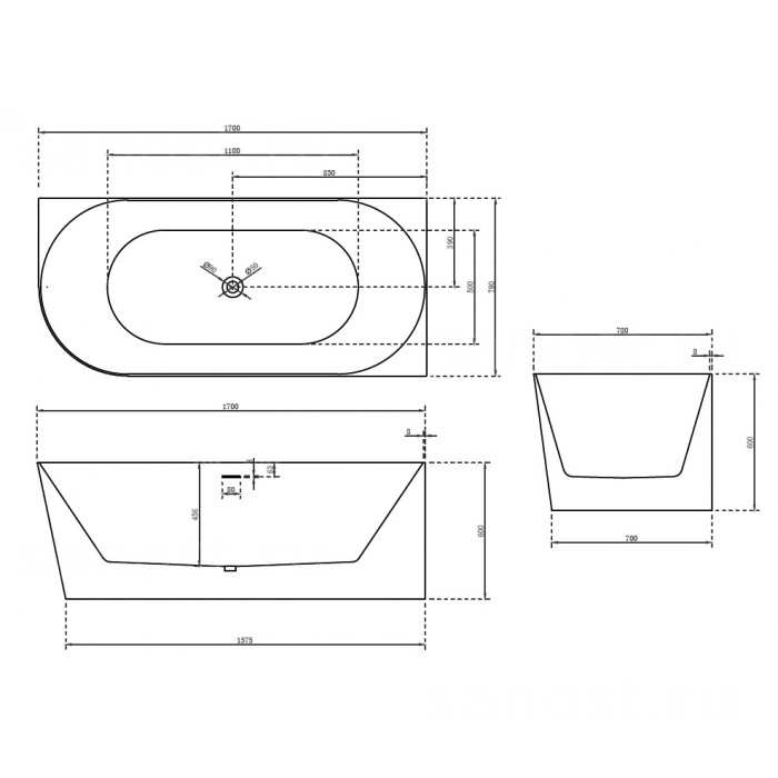 | Материалакрил | Длина, см170 | Ширина, см78 |