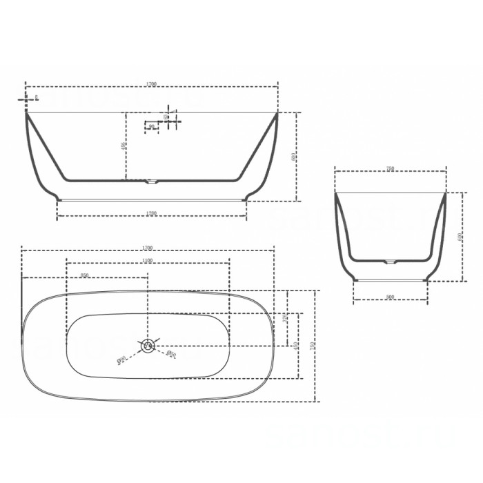| Материалакрил | Длина, см170 | Ширина, см75 |