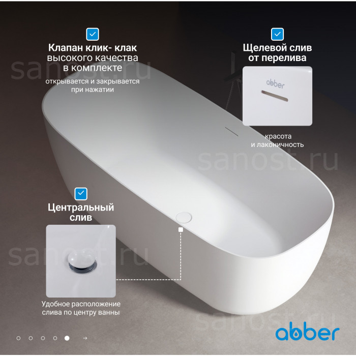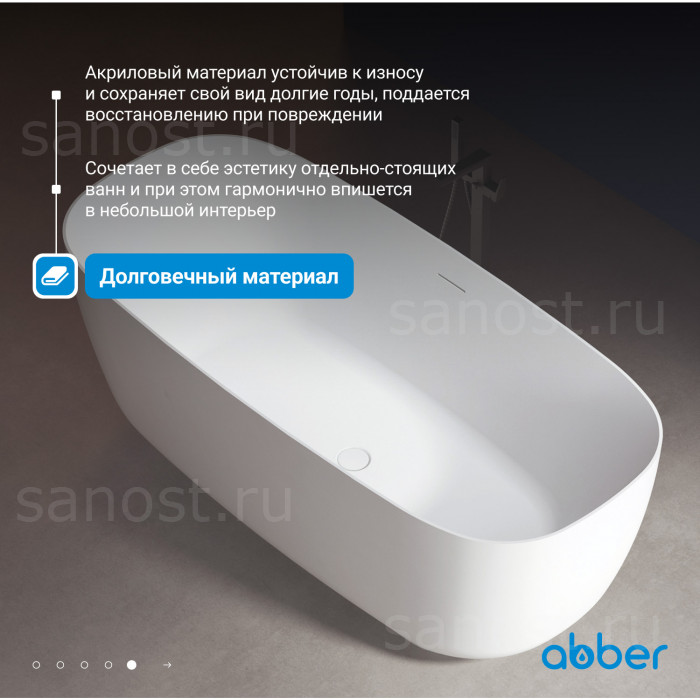 Акриловая ванна ABBER AB9260 белая универсальная отдельностоящая, материал акрил, объём 180 литров. Германия. Гарантия 10 лет.
