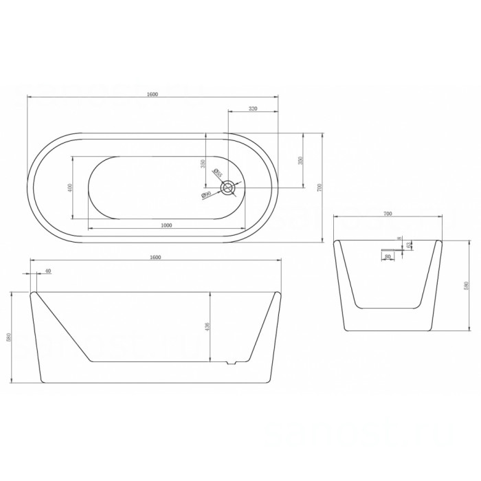 | Материалакрил | Длина, см160 | Ширина, см70 |