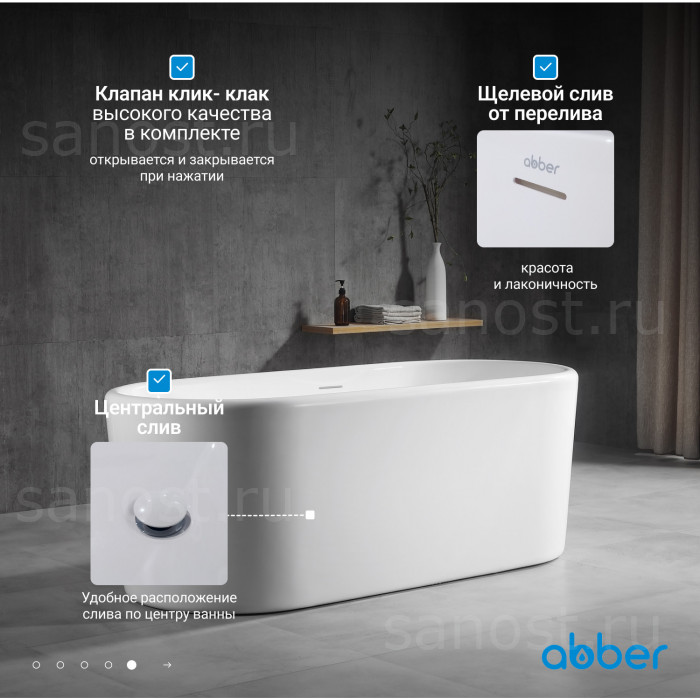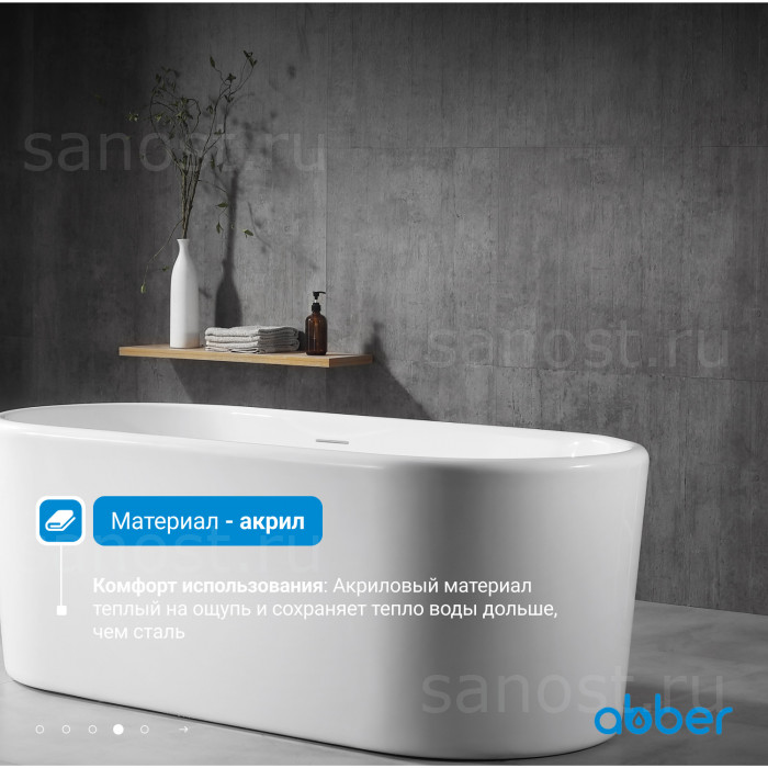 Акриловая ванна ABBER AB9272-1.6 белая универсальная отдельностоящая, материал акрил, объём 218 литров. Германия. Гарантия 10 лет.