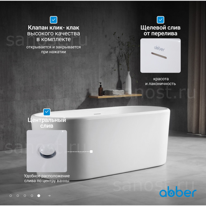 Акриловая ванна ABBER AB9272-1.7 белая универсальная отдельностоящая, материал акрил, объём 230 литров. Германия. Гарантия 10 лет.
