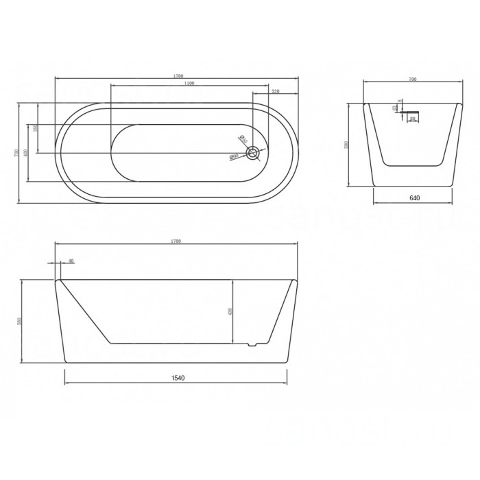| Материалакрил | Длина, см170 | Ширина, см70 |
