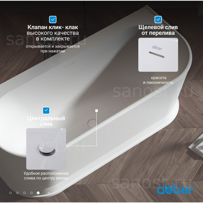 Технические характеристики Акриловая ванна ABBER AB9276 белая