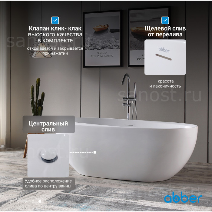 Акриловая ванна ABBER AB9285 белая универсальная отдельностоящая, материал акрил, объём 245 литров. Германия. Гарантия 10 лет.
