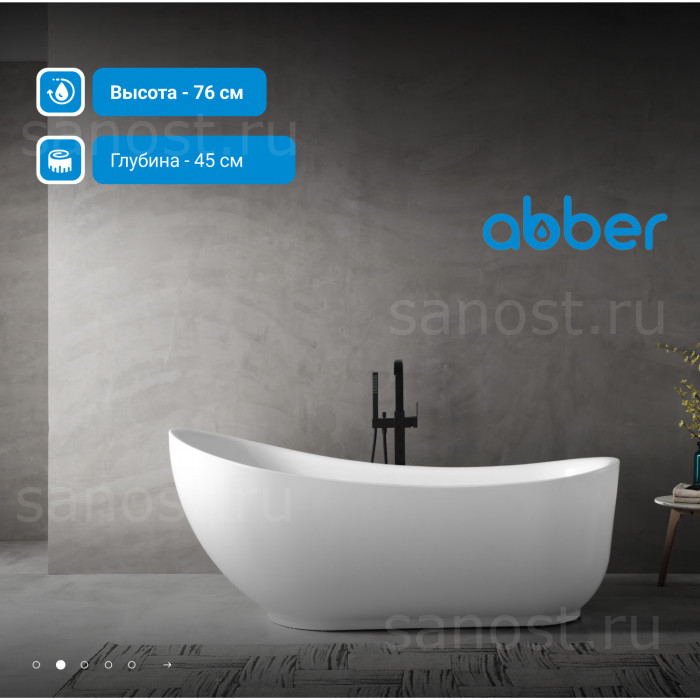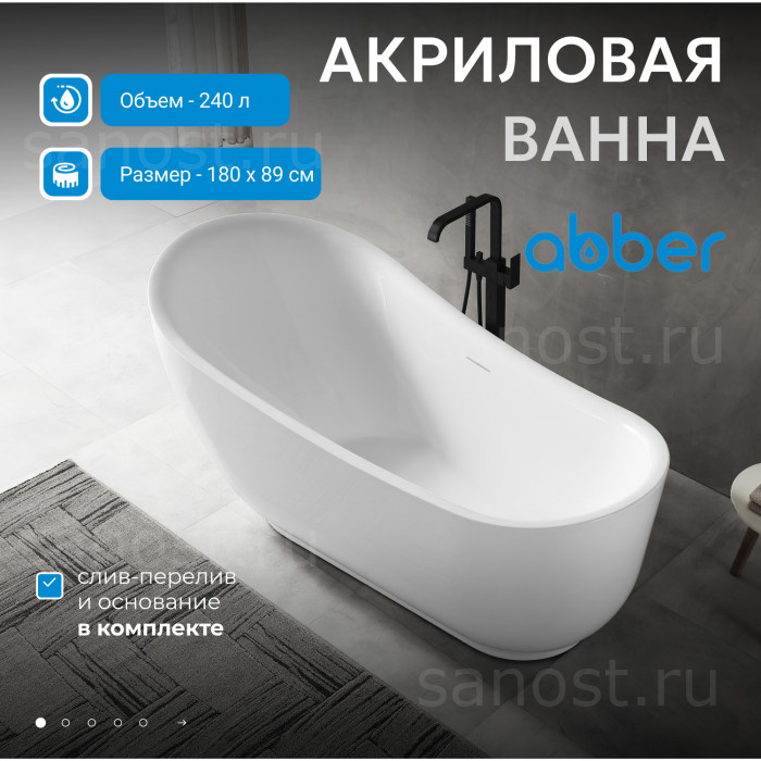 Акриловая ванна ABBER AB9288 белая универсальная отдельностоящая, материал акрил, объём 240 литров. Германия. Гарантия 10 лет.