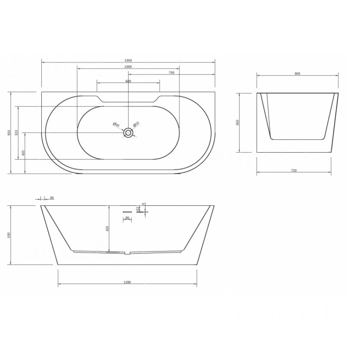 | Материалакрил | Длина, см150 | Ширина, см80 |