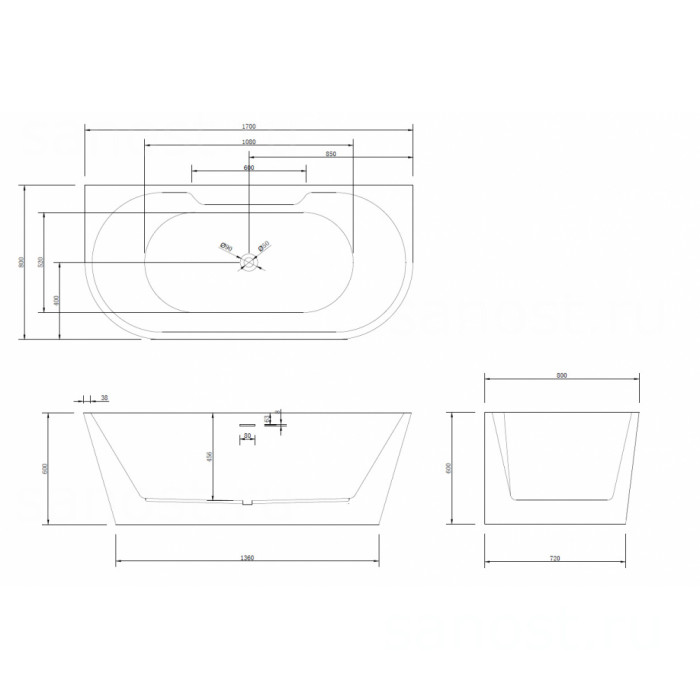 | Материалакрил | Длина, см170 | Ширина, см80 |