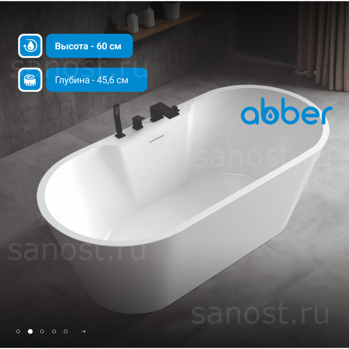 Акриловая ванна ABBER AB9299-1.5 белая универсальная отдельностоящая, материал акрил, объём 210 литров. Германия. Гарантия 10 лет.