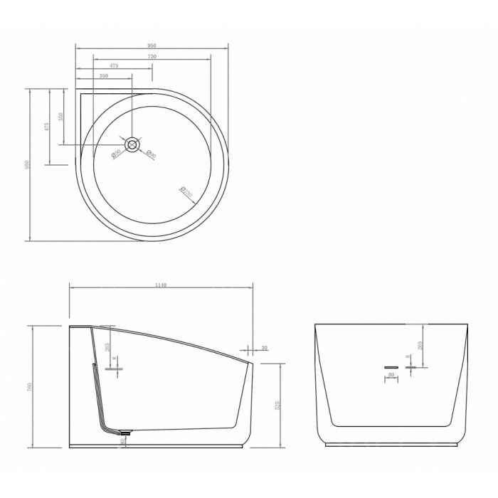 | Материалакрил | Длина, см95 | Ширина, см95 |