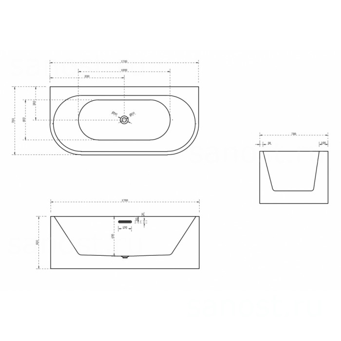 | Материалакрил | Длина, см170 | Ширина, см78 |