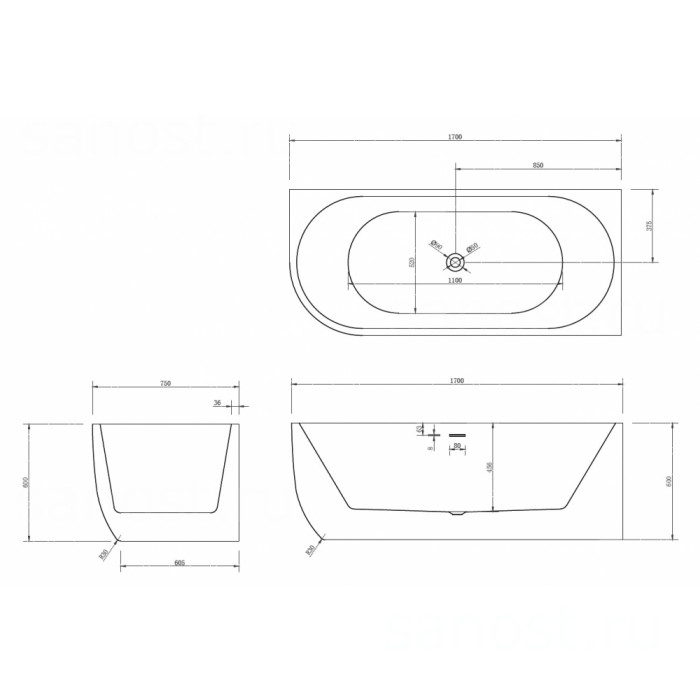 | Материалакрил | Длина, см170 | Ширина, см75 |