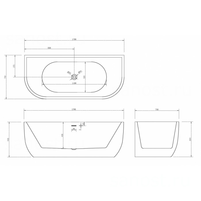| Материалакрил | Длина, см170 | Ширина, см75 |