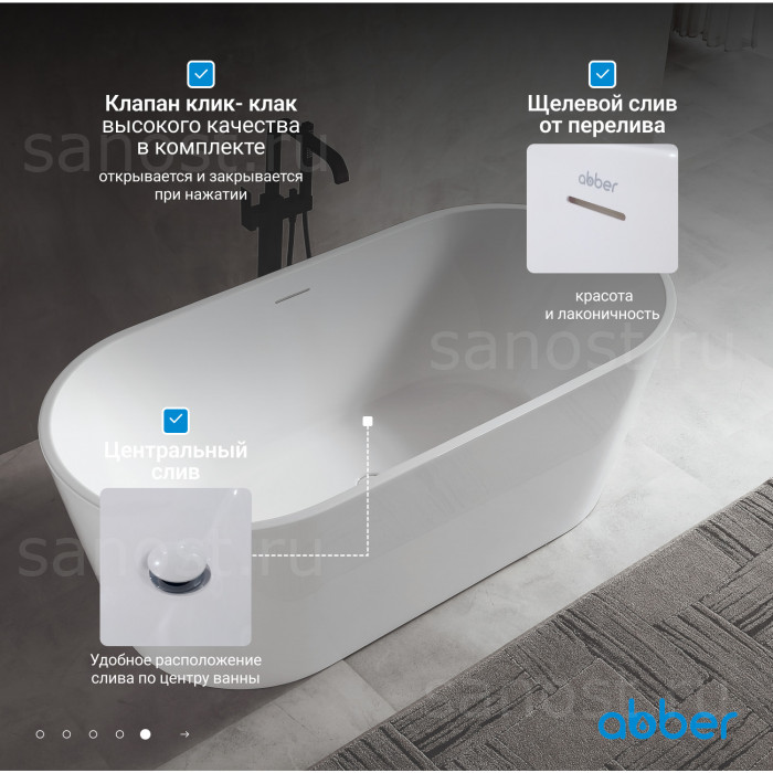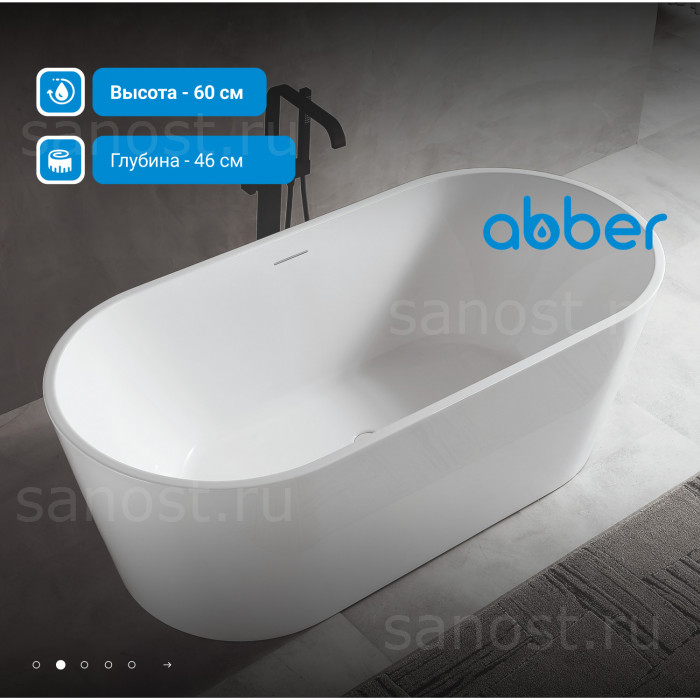Акриловая ванна ABBER AB9320-1.6 белая универсальная отдельностоящая, материал акрил, объём 190 литров. Германия. Гарантия 10 лет.