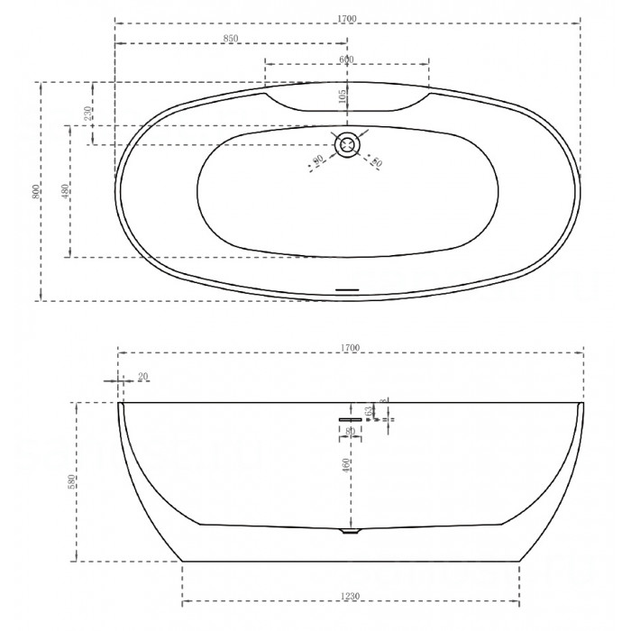 | Материалакрил | Длина, см170 | Ширина, см80 |